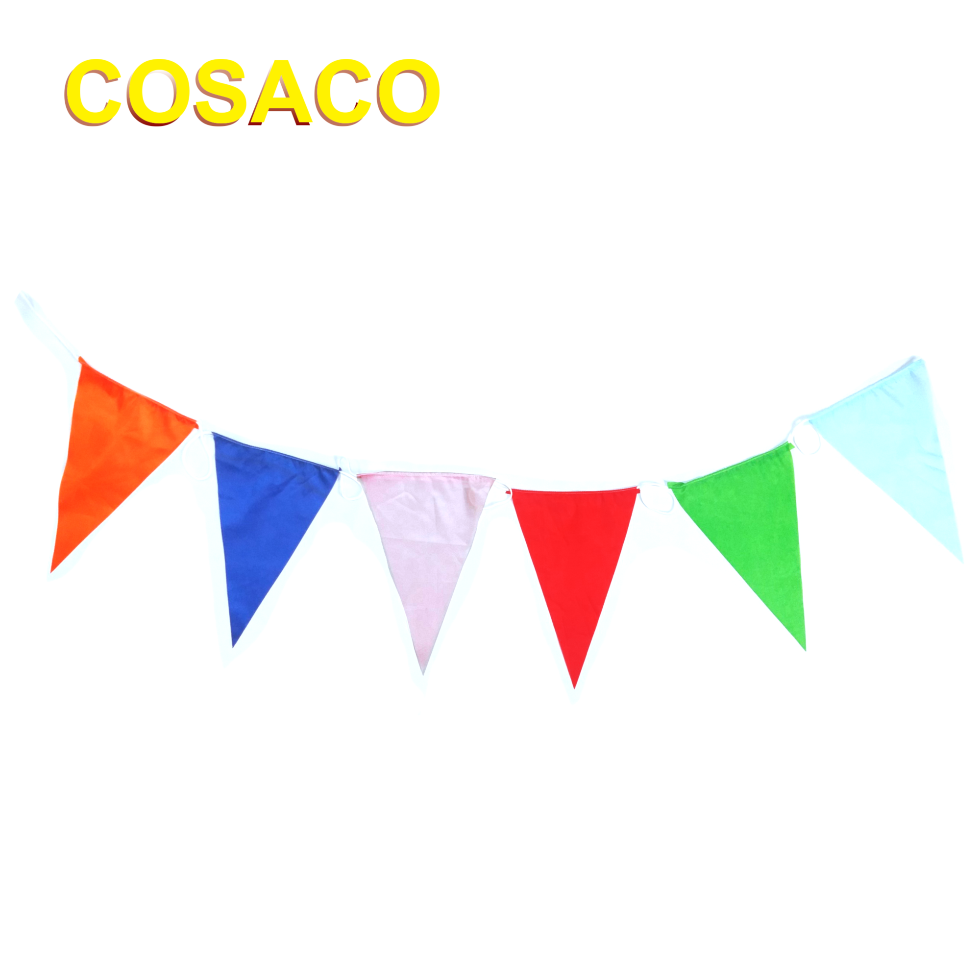 Cờ tam giác cũng còn được sử dụng để treo ngang trang trí trong các bước tiệc, sự kiện… Đối với loại cờ này, bạn nên sử dụng những giấy màu thật sặc sỡ, nổi bật.