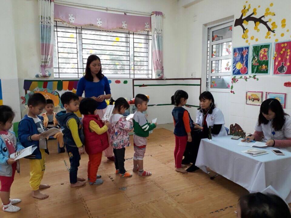 Thực hiện Chương trình phối hợp số 993/CTr-BYT-BGDĐT ngày 16 tháng 11 năm 2012 giữa Bộ Y tế và Bộ Giáo dục và Đào tạo về bảo vệ, giáo dục và chăm sóc sức khỏe trẻ em, học sinh, sinh viên trong các cơ sở giáo dục thuộc hệ thống giáo dục quốc dân, giai đoạn 2012-2020; Kế hoạch số 156/KH-UBND ngày 22/8/2016 của UBND Thành phố về triển khai công tác Y tế học đường năm học 2016-2017; Kế hoạch số 100/KH-UBND ngày 08/3/2017 của UBND Quận Long Biên về Lập hồ sơ, khám, quản lý sức khỏe toàn dân trên địa bàn quận Long Biên; Kế hoạch số 18 /PGD&ĐT V/v Hướng dẫn lập hồ sơ quản lý sức khỏe CBGVNV, học sinh các trường MN, TH, THCS trên địa bàn Quận ; Kế hoạch năm học 2016-2017của trường mầm non Phúc Lợi. Ngày 06/3/2017 Trường mầm non Phúc Lợi đã tổ chức khám sức khỏe cho toàn thể các cháu đợt 2 năm học 2016- 2017. Trong các hoạt động của nhà trường, công tác chăm sóc sức khoẻ ban đầu cho trẻ là một việc làm luôn được nhà trường đặc biệt quan tâm. Từ nhiều năm nay, việc tổ chức khám sức khoẻ định kỳ cho trẻ đã được nhà trường duy trì thành nề nếp thực hiện thường xuyên theo kế hoạch. Ngay từ đầu năm học 2016 – 2017 nhà trường đã phối hợp với Trung tâm y Quận – Trạm y tế của phường Phúc Lợi để tổ chức khám sức khỏe toàn diện cho toàn thể các con trong trường. Sau đợt khám đầu tiên, ban chăm sóc sức khỏe ban đầu của nhà trường đã tổng hợp kết quả khám và có thông báo ngay đến các phụ huynh học sinh bằng văn bản, công khai lên trang Web của nhà trường. Từ đó phụ huynh học sinh đã đưa con đến chuyên khoa thăm khám sâu hơn để có biện pháp trong điều trị, chăm sóc trẻ kịp thời.